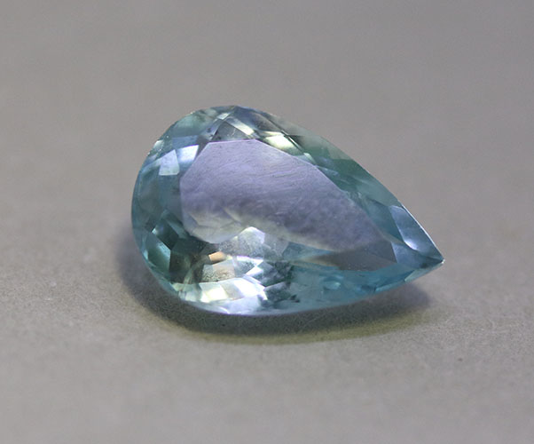 2,27 карата синьо-зелен аквамарин с форма на шлифовка – круша; Размер 11,79 х 7,92 x 4,7 мм, Чистота – прозрачен; произход – Афганистан