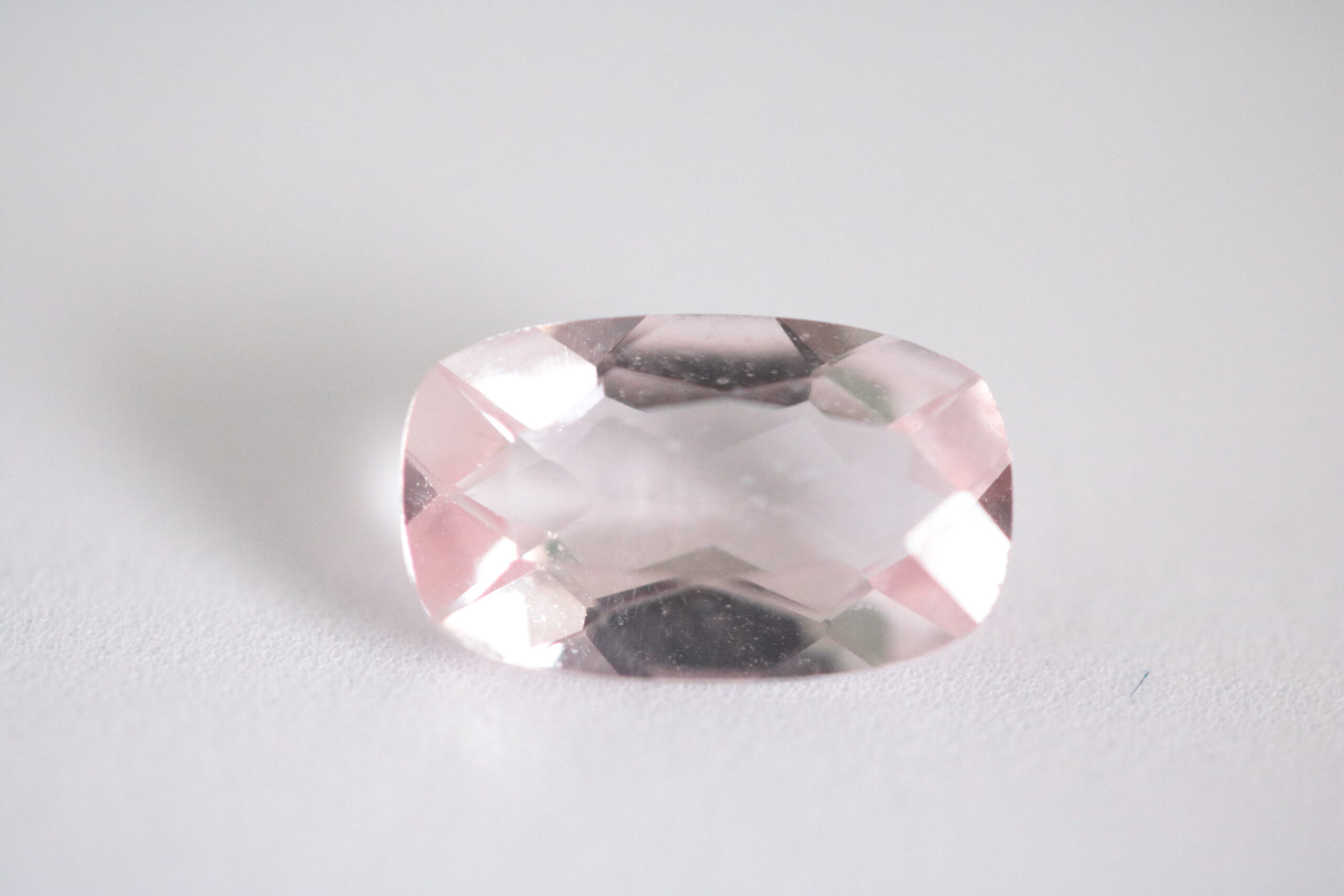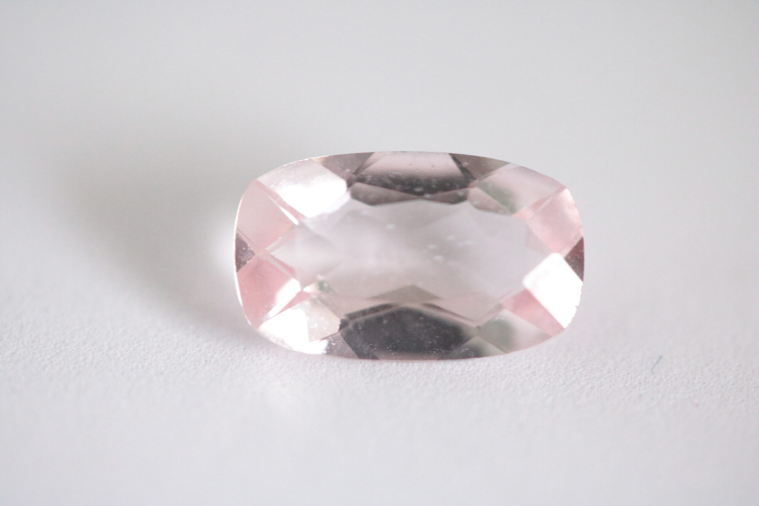 1,45 карата морганит светло розов с форма на шлифовка – кушон; нетретиран; Размер 10,5 х 6,9 x 4,55 мм, Чистота – прозрачен; произход – Афганистан