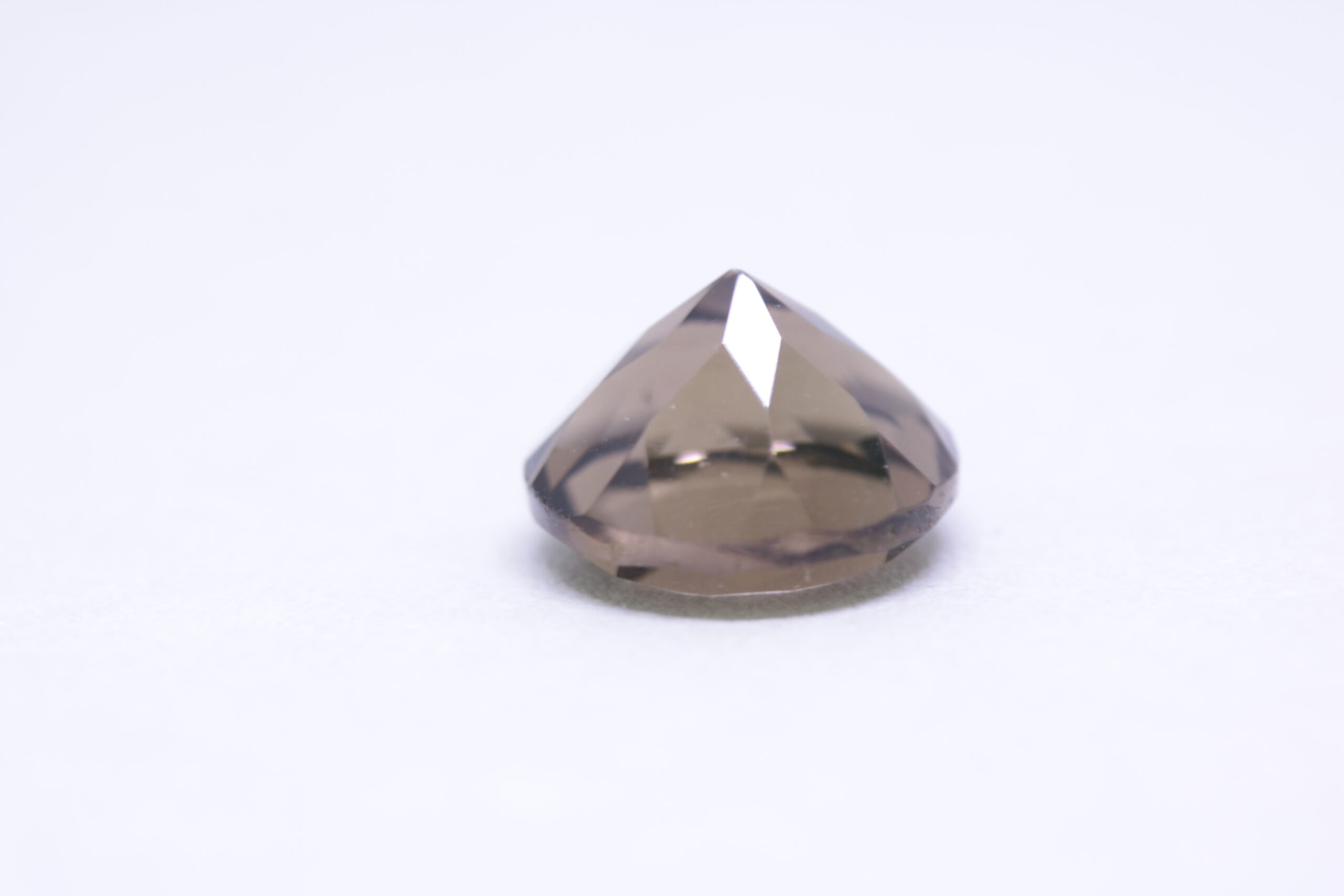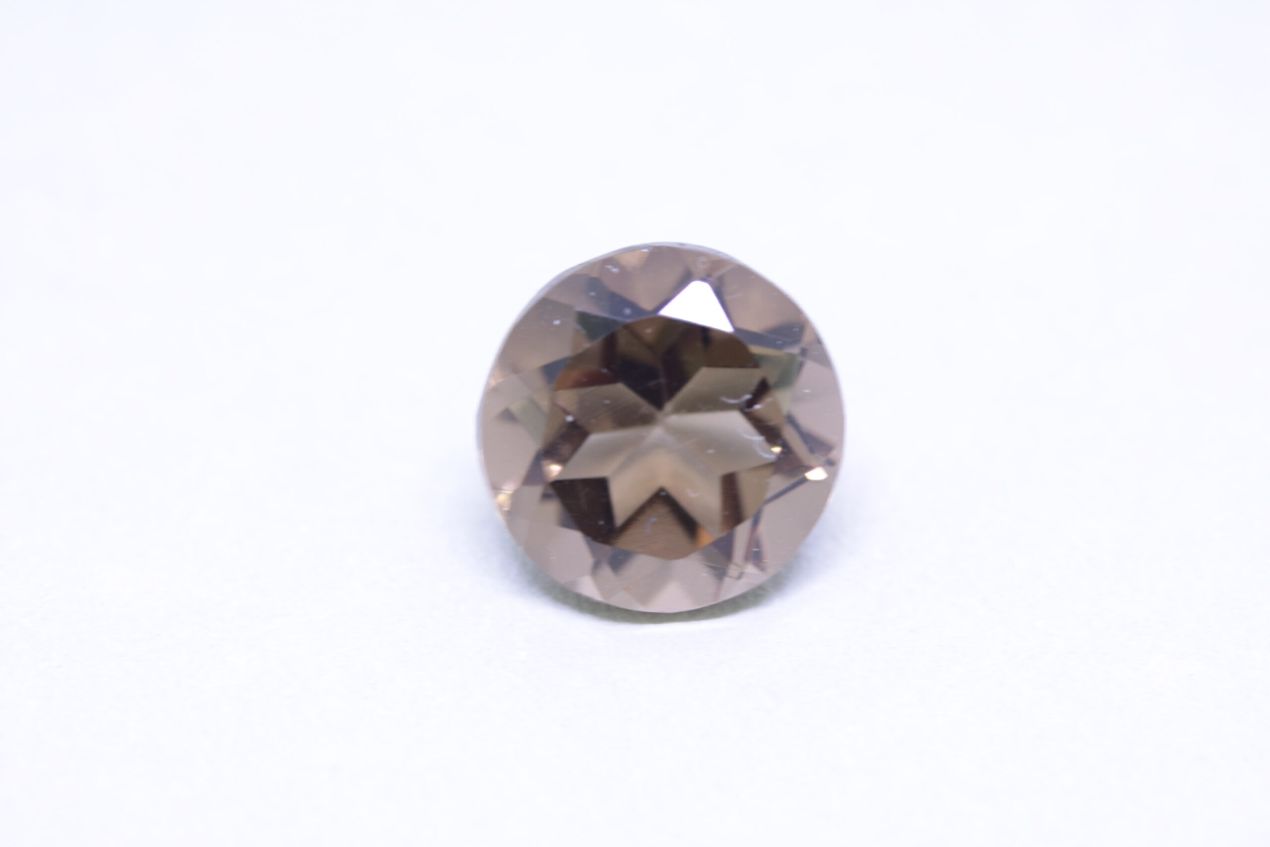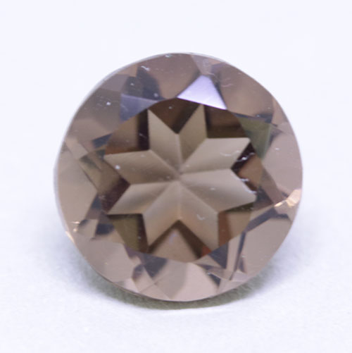 3,64 карата опушен кварц кафяв; форма на фасетиране – кръгла; размери – 9,89 х 6,75 мм; Чистота – прозрачен; произход – Индия; естествен нетретиран скъпоценен камък
