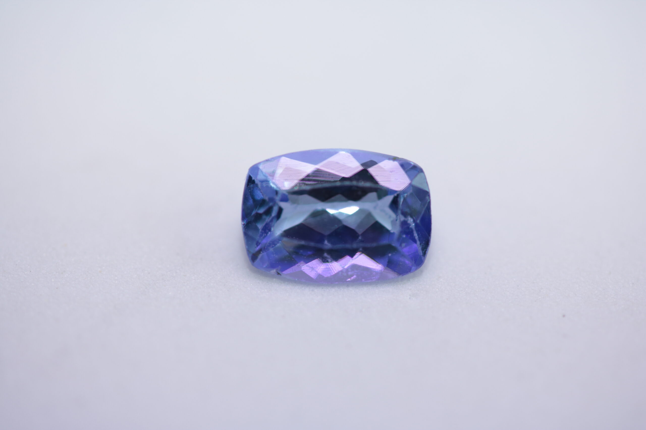 0,87 карата син танзанит естествен от Танзания; форма на шлифоване – принцес; размери – 6,8 x 4,8 х 3 mm, Третиране – обичайно топлинно нагряване, Чистота-прозрачен