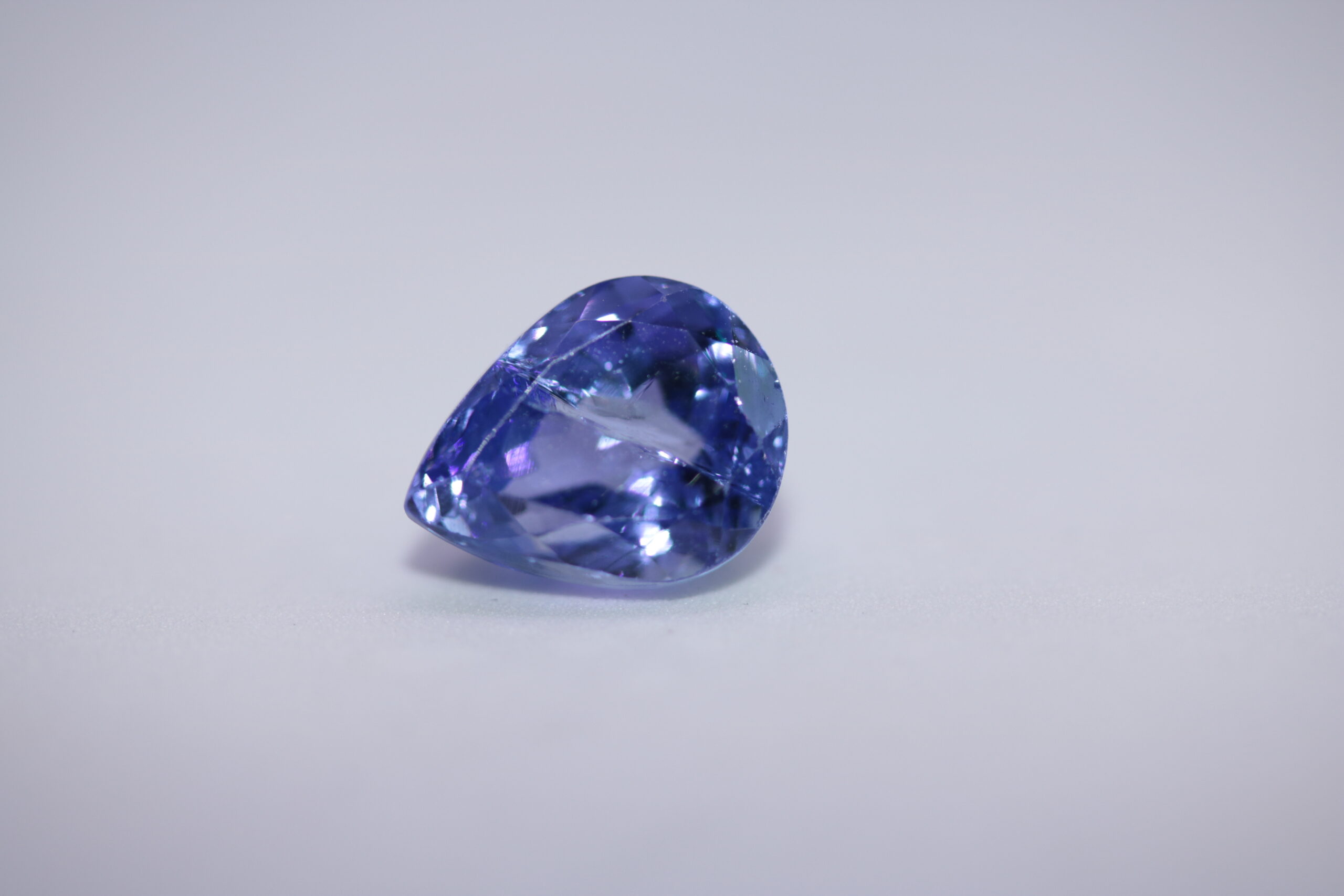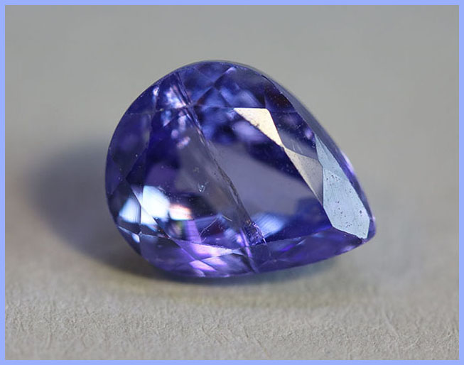 3,84 карата син танзанит естествен от Танзания; форма на шлифоване – круша; размери – 10,2 x 8,10 х 6,4 mm, Третиране – обичайно топлинно нагряване